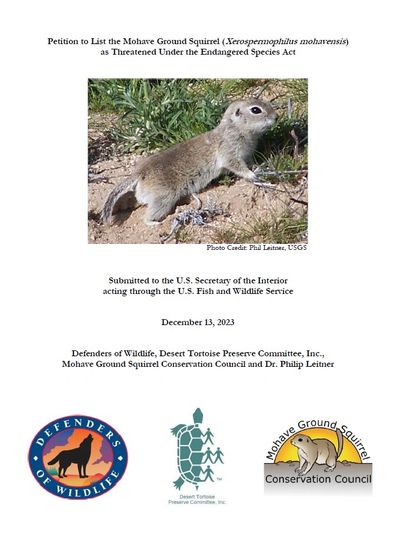On December 13, 2023, the Defenders of Wildlife, the Desert Tortoise Preserve Committee and the Mohave Ground Squirrel Conservation Council filed a petition with the Department of the Interior to list the Mohave ground squirrel (Xerospermophilus mohavensis) as a threatened species and to designate critical habitat concurrent with the listing.